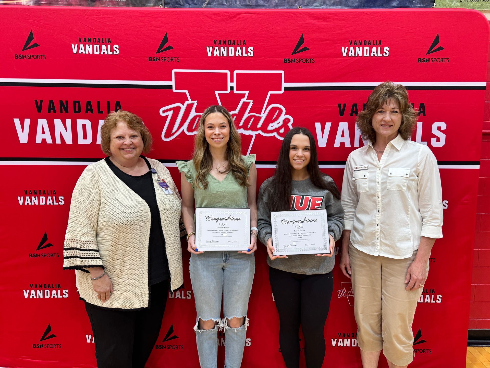 The arrival of 2024 means a change in GFC Chamber Presidents. The Greater Fayette County Chamber of Commerce welcomes Dr. Jennifer Garrison, Superintendent of the Vandalia Community School District #203, as the Chamber's President for the 2024-25 term. Past President, Ty Bates of McKellar, Robertson, McCarty & Click Insurance passes the gavel to begin the transition of Presidency.